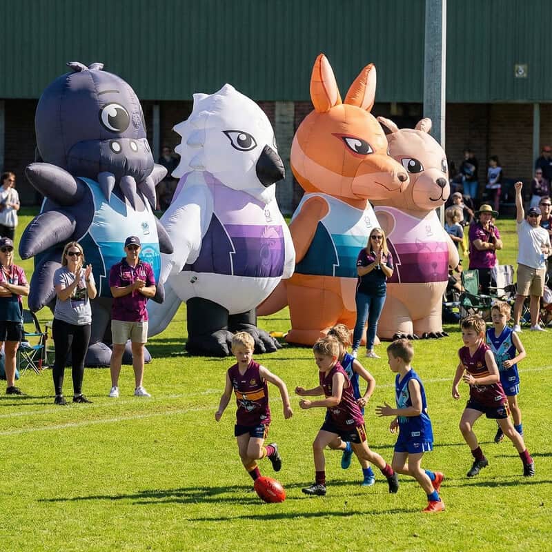 All of our inflatables come complete with Australian compliant air pumps, carry bags, tiedown ropes and pegs. And yes, our blower unit comes with a full warranty.